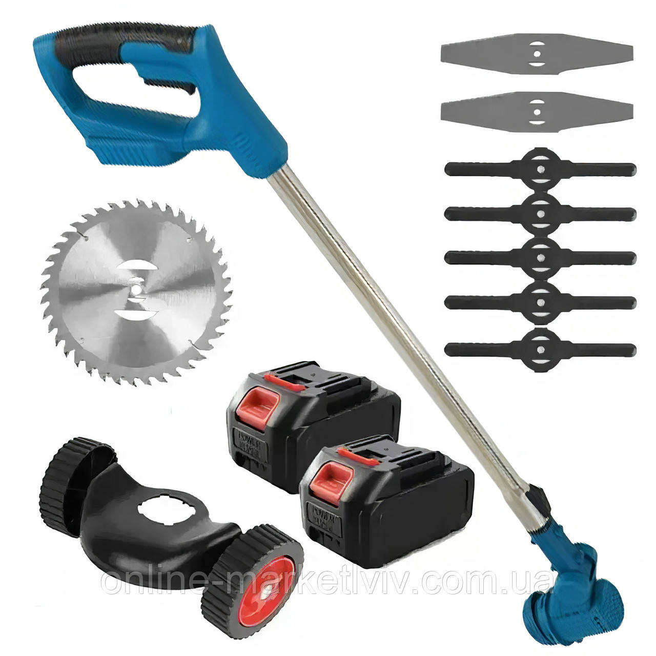 Оборудование состоит из силового агрегата и штанги с режущим инструментом, защищённой кожухом. С помощью ремня оператор фиксирует газонокосилку в руках, направляя режущую часть в нужное место.